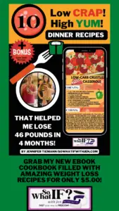 I’d love for you to take a short tour of my So What IF? with Jen WEBSITE and BLOG. Here you will find more great intermittent fasting TIPS, TRICKS, and WEIGHT LOSS RECIPES and PRODUCTS!